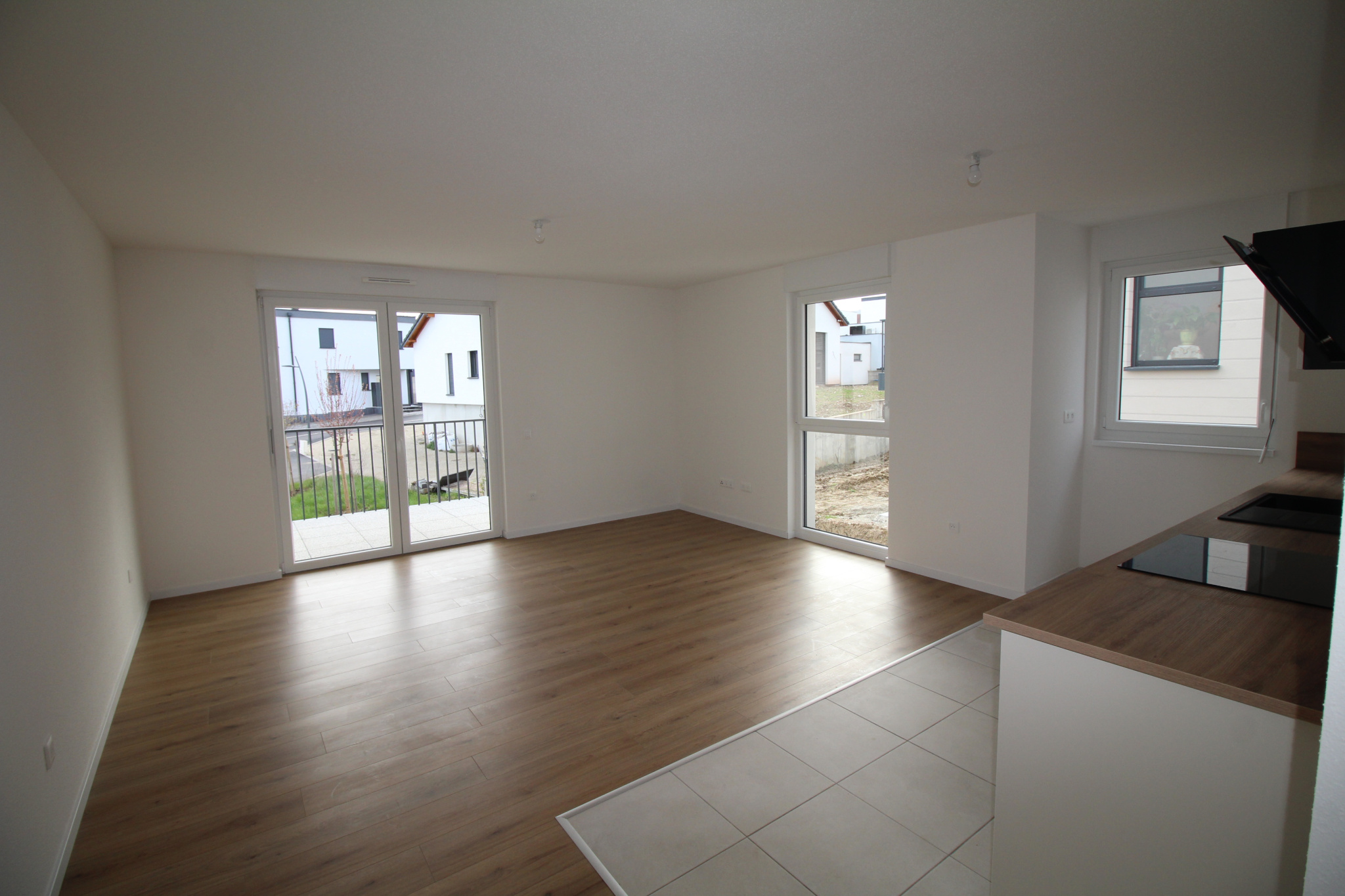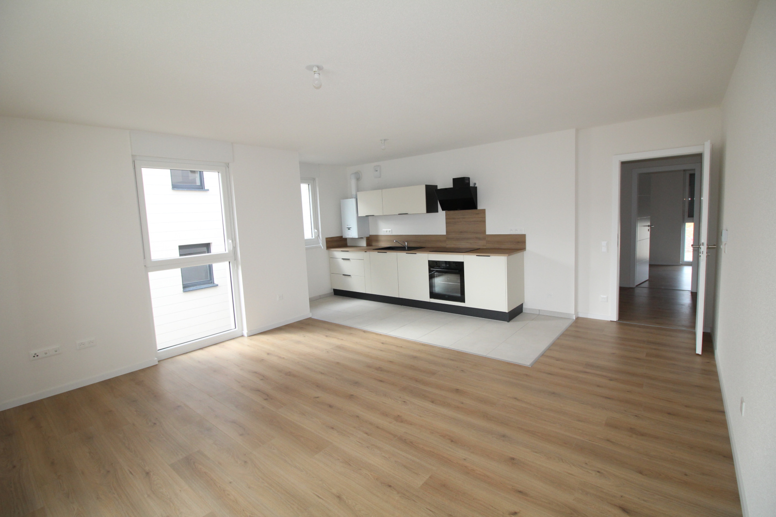SAVERNE, dans une résidence neuve appartement F3 composé d'un séjour avec cuisine et un balcon, une salle de bain, un wc, 2 chambres et une place de parking couverte.