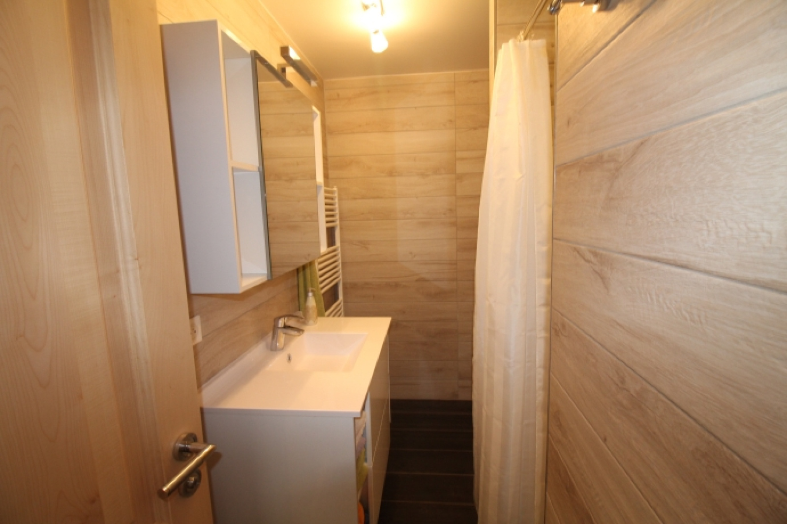 Le niveau inférieur se compose d’une buanderie, d’un dégagement, d’une salle d'eau (vasque, douche et WC) et d'une spacieuse pièce de 30 m² permettant également un accès vers l’extérieur. Aujourd'hui salle de chasse et demain, salle de jeux, espace détente, studio...